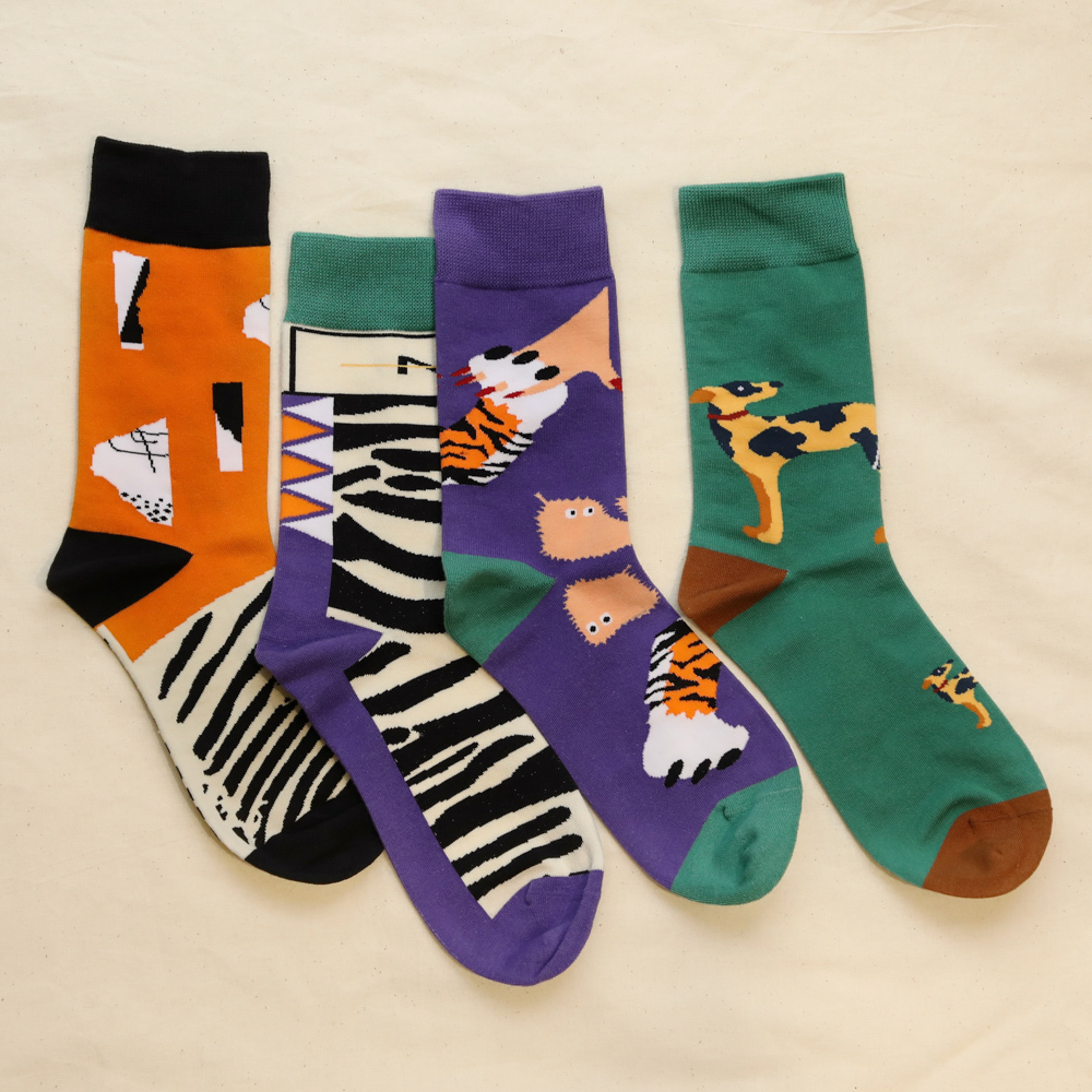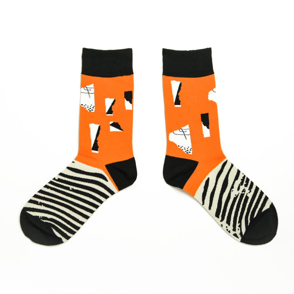 創意斑馬紋拼接中筒襪【JA98CI036】